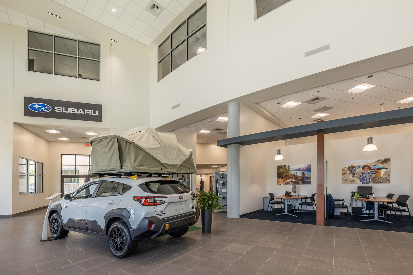 with kids playroom, 1,900 SF Parts storage area, and Dealer operational spaces). - 2,285 SF Mezzanine-level additional parts storage – originally planned, removed at final design stage